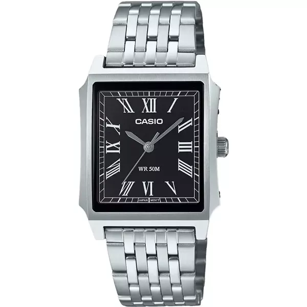 Klassisch elegante Casio Timeless Collection MTP-B190D-1BVEF Armbanduhr mit schwarzem Zifferblatt und römischen Ziffern.