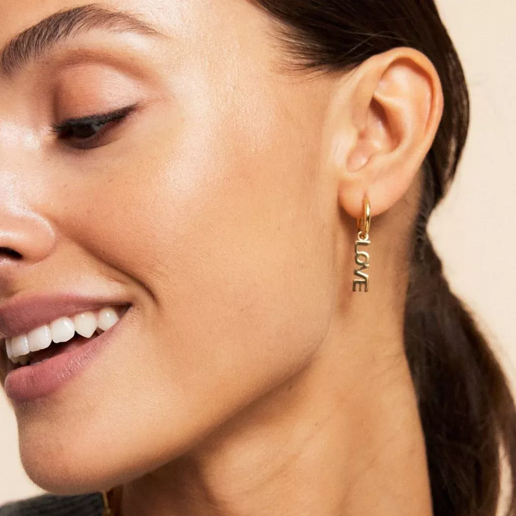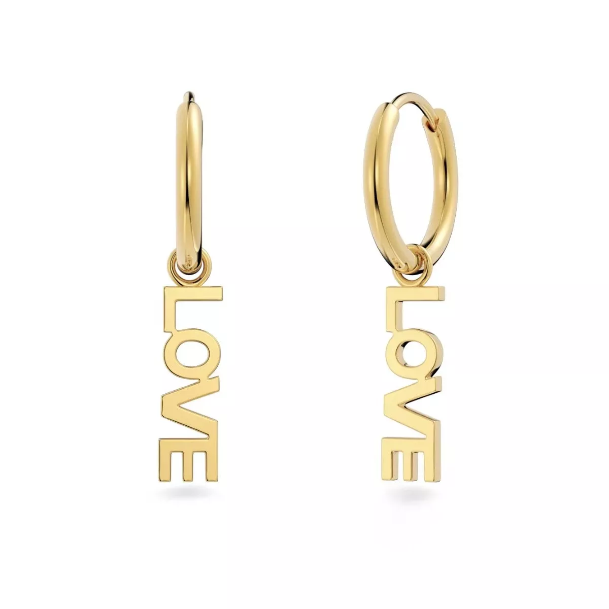 Der Anhänger misst 16 x 5 mm, der Ringdurchmesser beträgt 14 mm. Gefertigt aus Edelstahl mit einer 14-Karat-Goldbeschichtung, sind die Ohrringe nickelsicher und wasserbeständig. Die Love Gold Ohrringe sind ein elegantes Geschenk oder ein persönliches Symbol der Liebe, das jeden Tag Glanz verleiht.