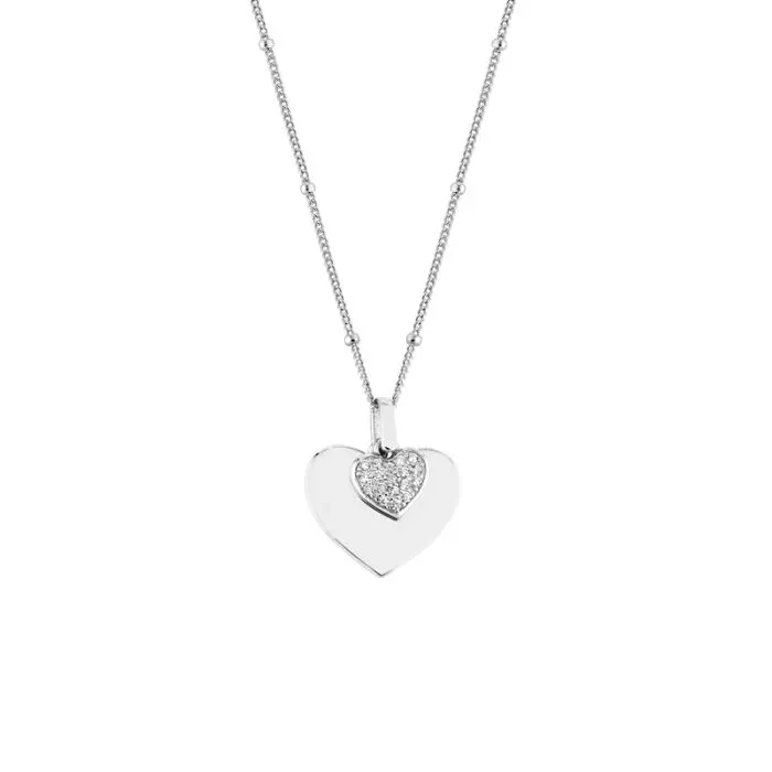 Wunderschöne Silberkette mit Herzen, von denen eines mit funkelnden Zirkonia-Steinen verziert ist.