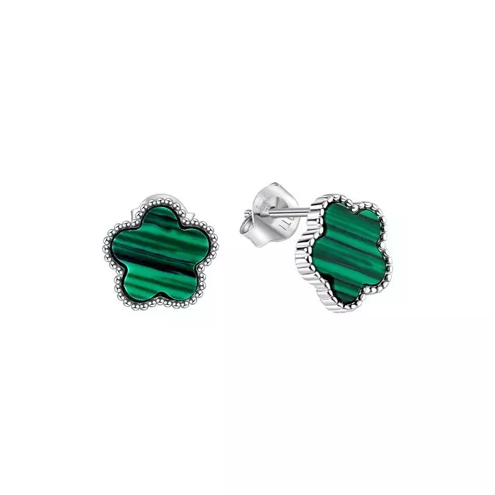 Wunderschöne Silberohrringe mit grünen Blumen.