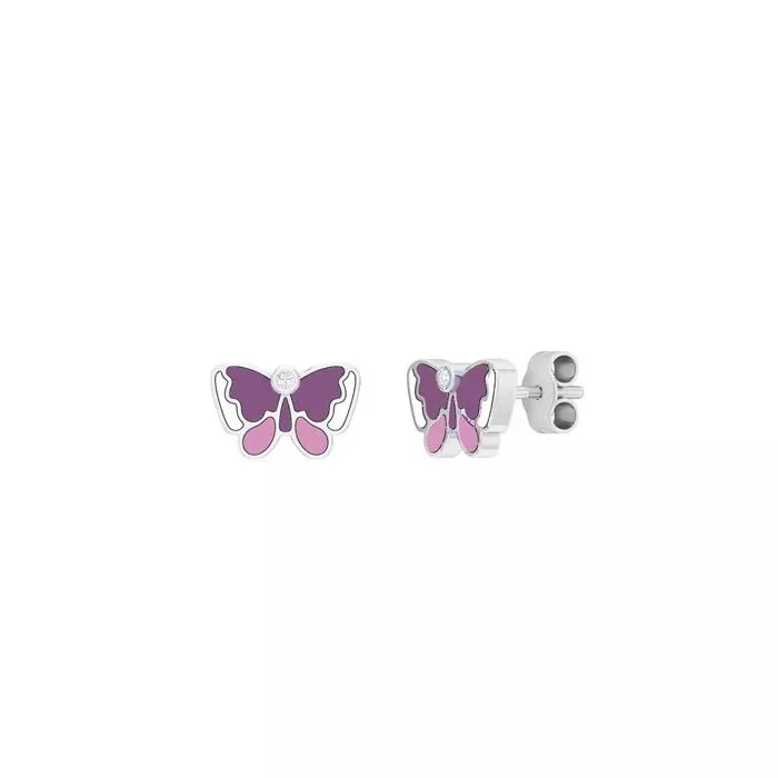 Süße Silberohrringe mit violetten Schmetterlingen.
