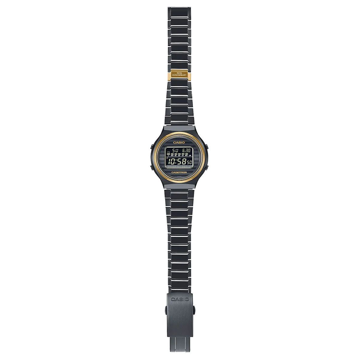 Casio Vintage Limited Edition TRN-50ZE-1AER is a striking anniversary model created to celebrate 50 years of Casio watches and the brand’s enduring spirit of innovation. Inspired by the original Casiotron, this special edition introduces a refined black and gold colour scheme that enhances the dial and bezel with a premium, modern feel.