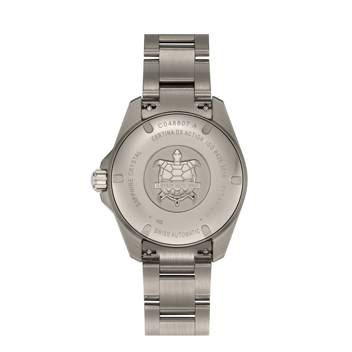 Certina DS Action Diver 38mm Powermatic 80 on kevyt ja kestävä titaanikello, jossa yhdistyvät moderni automaattikoneisto ja sukeltajankellon vahva suorituskyky. Titaaninen runko ja ranneke tarjoavat erinomaisen käyttömukavuuden, ja musta taulu Super-LumiNova-merkinnöillä takaa selkeän luettavuuden kaikissa olosuhteissa. Powermatic 80 -koneisto tarjoaa jopa 80 tunnin käyntivaran. Kellon 300 metrin vesitiiviys ISO 6425 -standardin mukaan tekee siitä varman valinnan syvän veden haasteisiin. Tyylikäs ja tekninen kello, joka on tehty kestämään
