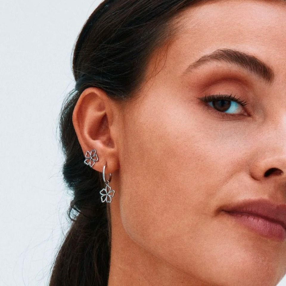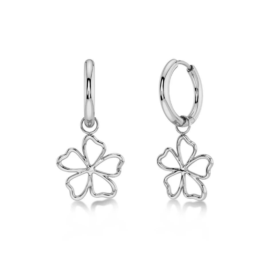 Korvakorut on valmistettu kiiltävästä ruostumattomasta teräksestä, mikä antaa niille raikkaan ja ajattoman ilmeen. Renkaisiin kiinnitetty kaunis kukkariipus on irrotettava, joten korvakoruja voi käyttää kahdella eri tavalla – joko pelkistettyinä renkaina tai näyttävämpinä riipuksellisina korvakoruina.