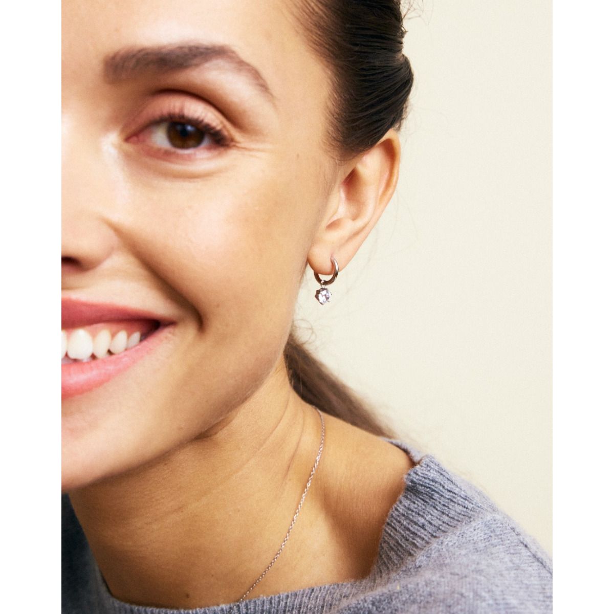 Edblad Crown Hoops -korvakorut hurmaavat hienostuneella säihkeellään. Pienestä renkaasta roikkuu 5 millimetrin kokoinen kuutiollinen zirkonia, joka tuo koruihin klassista eleganssia ja valon hehkua. Korut on valmistettu kiiltävästä, hopeanvärisestä ruostumattomasta teräksestä. Ne ovat nikkeliturvalliset ja vedenpitävät, ja sopivat erinomaisesti niin arkeen kuin juhlaan.