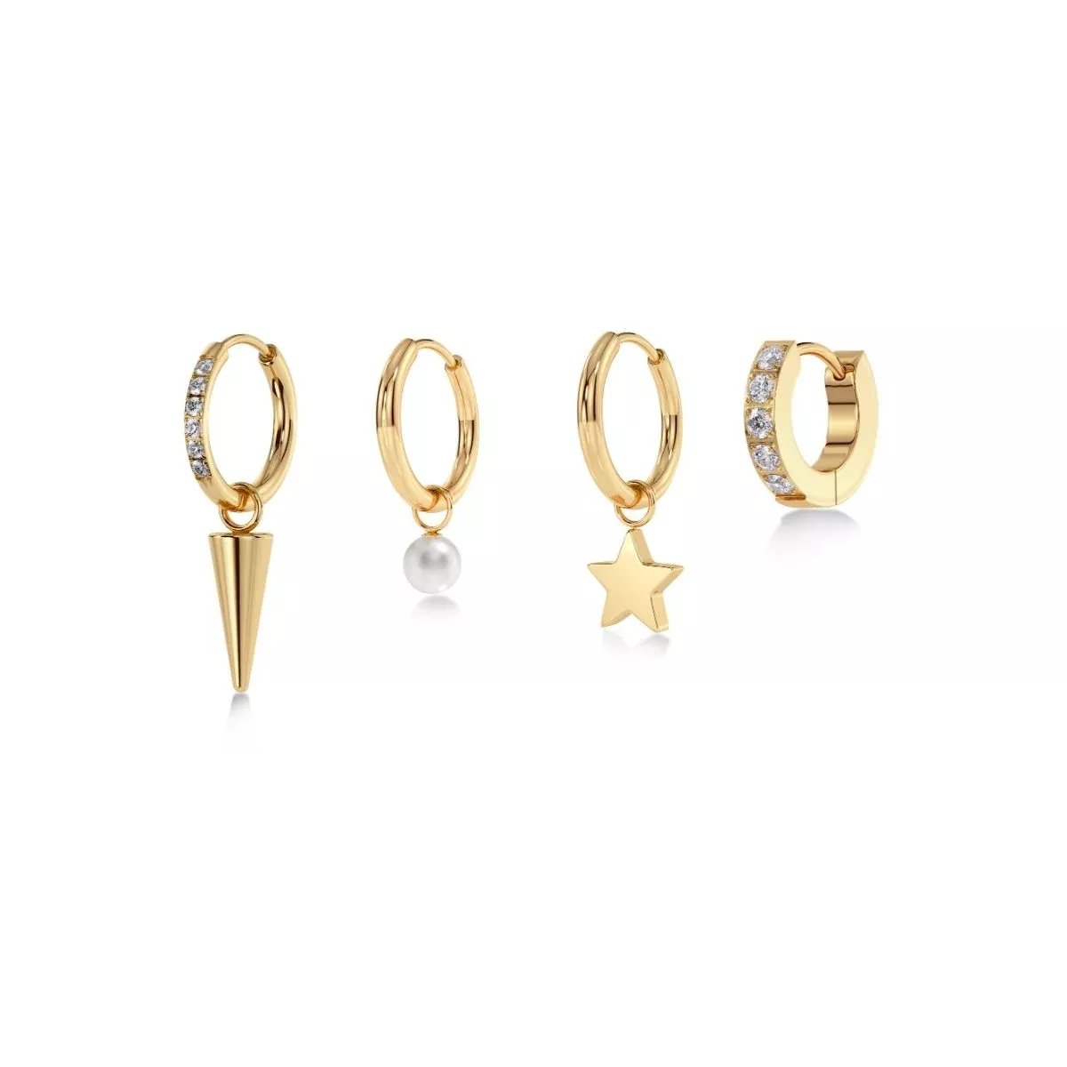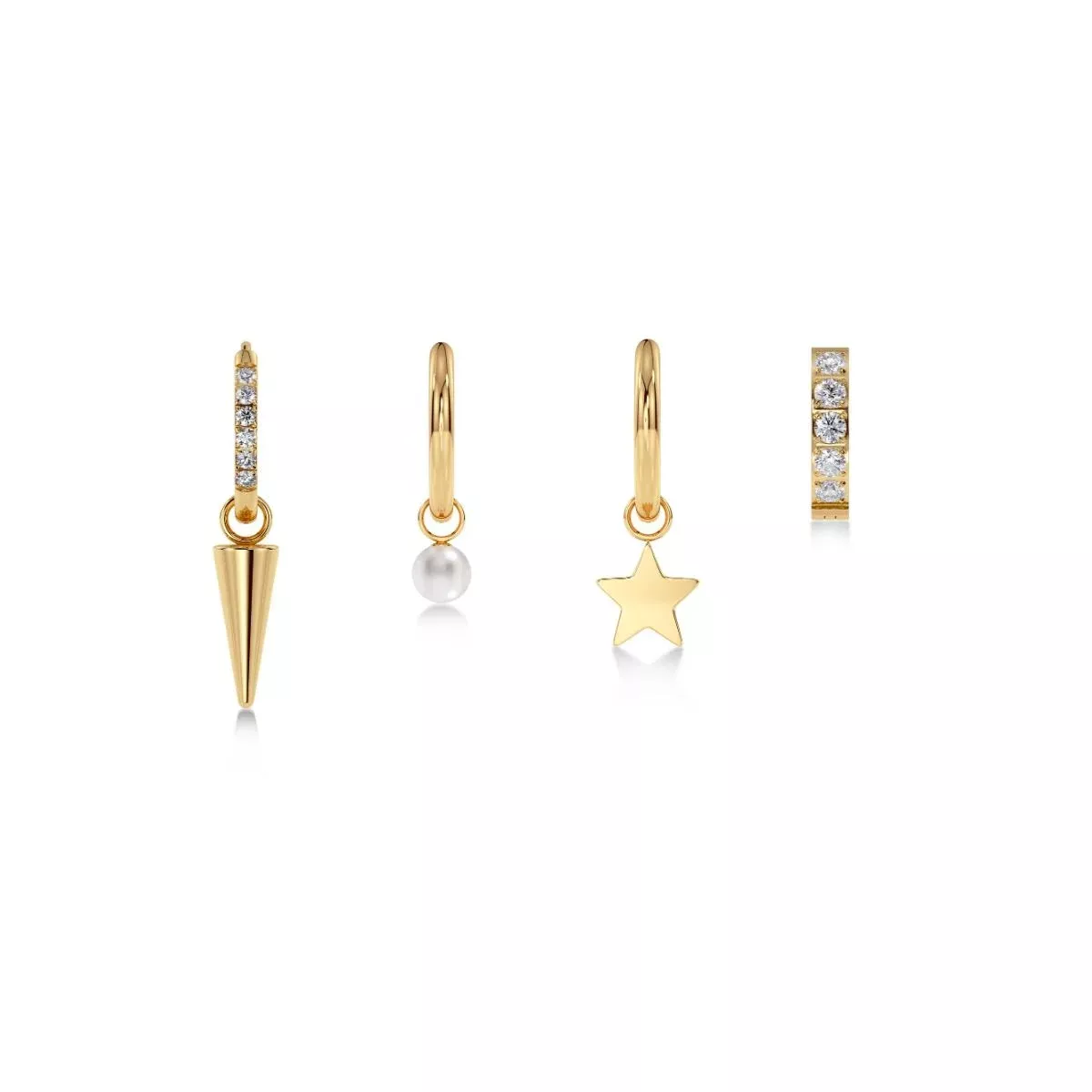 Edblad Peak Sirius -korvakorusetti huokuu modernia eleganssia ja ajatonta viehätystä. Kolmen erilaisen korvakorun – niitin, helmen ja tähden – yhdistelmä luo harmonisen kokonaisuuden, joka antaa mahdollisuuden muunnella tyyliä tilanteen ja tunnelman mukaan.