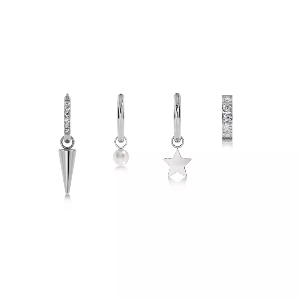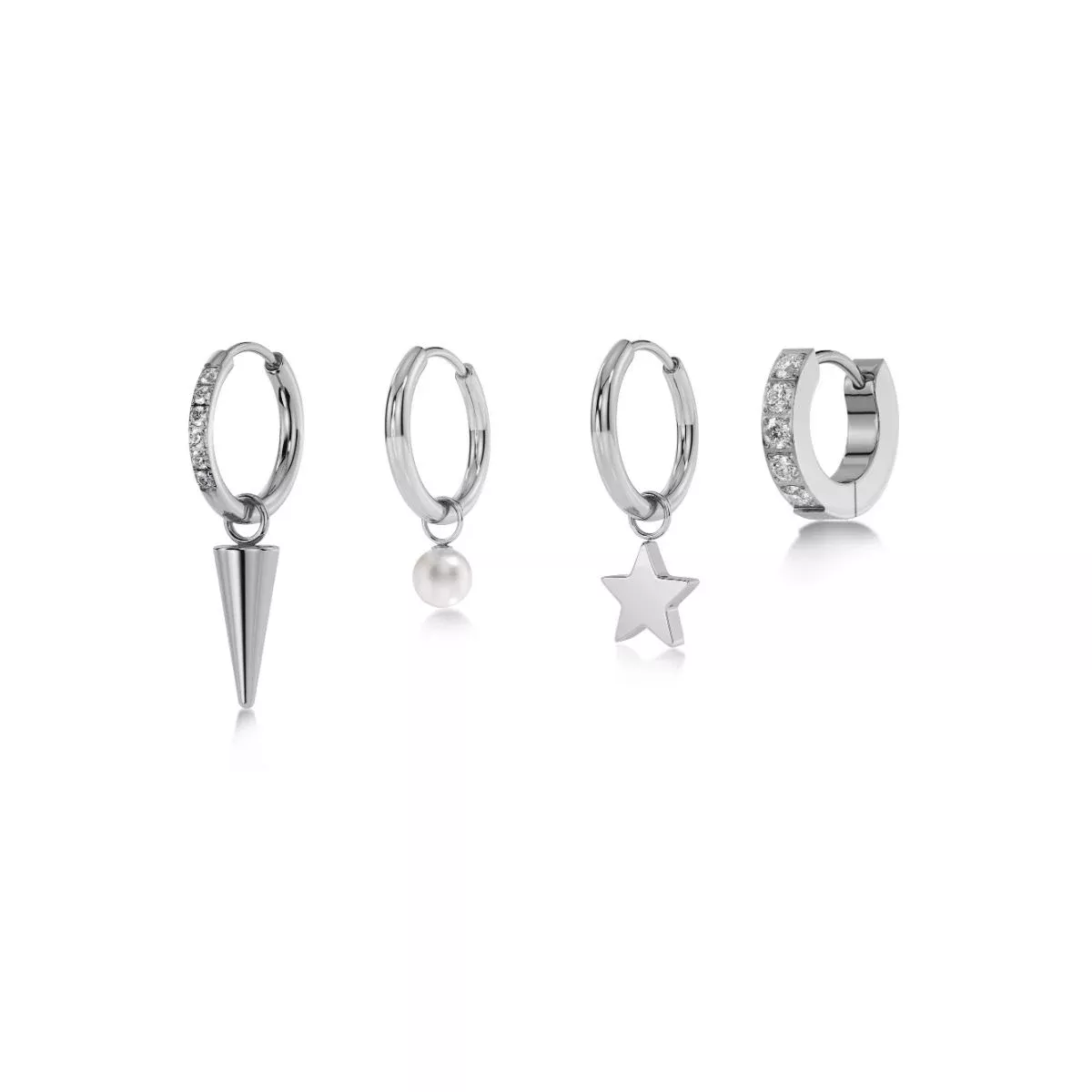 Edblad Peak -korvakorusetti Sirius tuo korumallistoon modernia eleganssia ja ajatonta charmia. Setissä yhdistyvät kolmen erilaisen korun elementit – niitti, helmi ja tähti – jotka luovat harmonisen kokonaisuuden ja tarjoavat mahdollisuuden muunnella tyyliä tilanteen mukaan.
