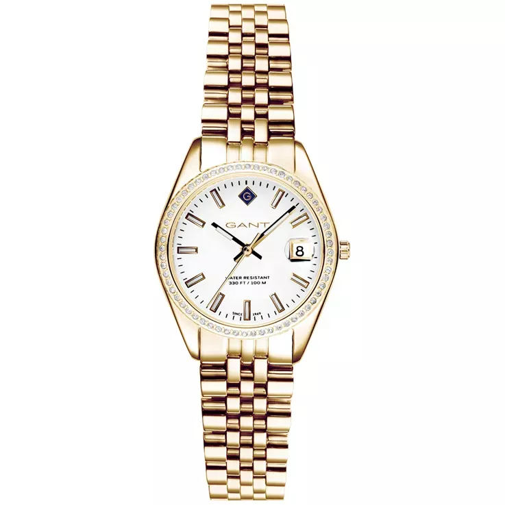 GANT Sussex Mini G181113 on elegantti ja siro naisten rannekello, jossa ajaton muotoilu kohtaa hienostuneen värimaailman. Kullanvärinen kuori ja ranneke luovat kellolle ylellisen ilmeen, joka sopii täydellisesti niin arjen tyylikkäisiin hetkiin kuin juhlavampiin tilaisuuksiin.