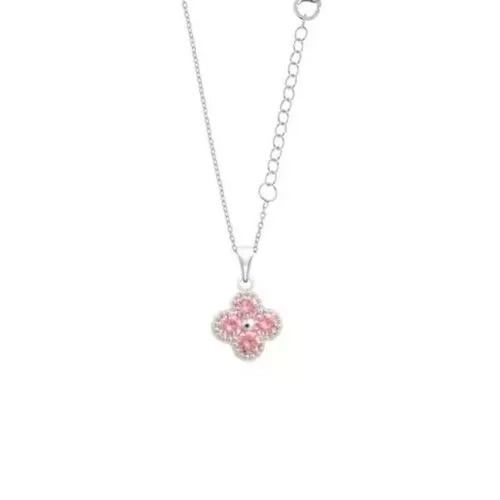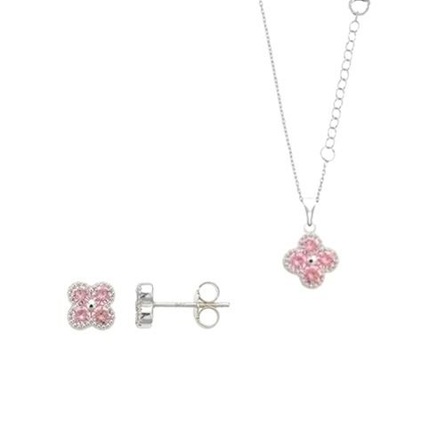 Hopeinen korusetti, vaaleanpunainen kukka Muokkaa ja lisää ostoskoriin