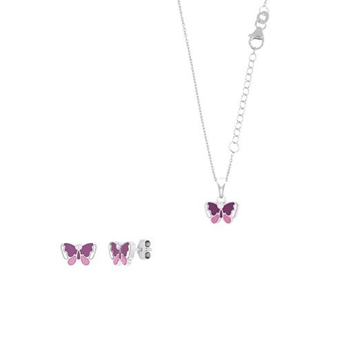 Hopeinen korusetti, violetti perhonen Muokkaa ja lisää ostoskoriin