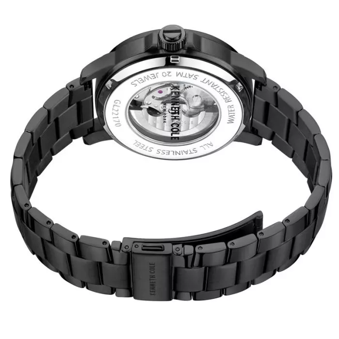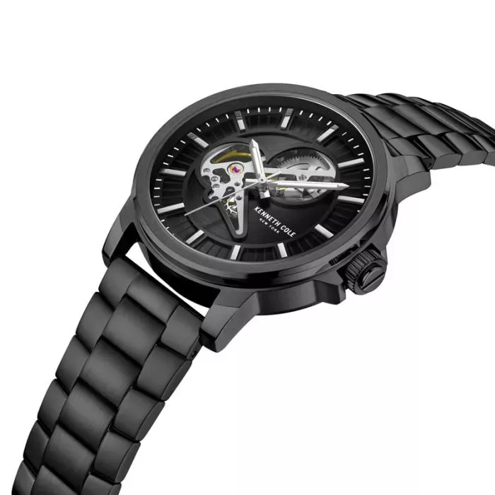 Kenneth Cole Automatic on täydellinen valinta miehelle, joka arvostaa skeleton-kellon teknistä näyttävyyttä, automaattikoneiston ekologisuutta ja laadukkaista materiaaleista valmistettua ajannäyttäjää.