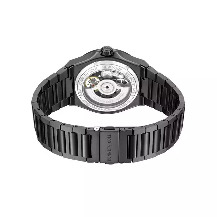 Kenneth Cole New York Automatic KCWGY0067405 on näyttävä kokomusta miesten rannekello, jossa moderni kaupunkityyli yhdistyy mekaaniseen kellotekniikkaan. Musta kuori, ranneke ja kellotaulu luovat voimakkaan ja yhtenäisen ilmeen, joka erottuu tyylikkäästi niin arjessa kuin iltamenoissa.
