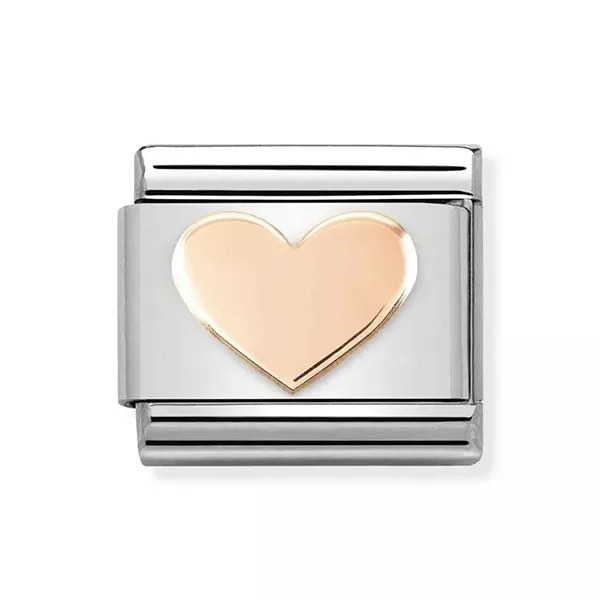 Suloinen Nomination Classic pala ruusukullanvärisellä sydämellä.