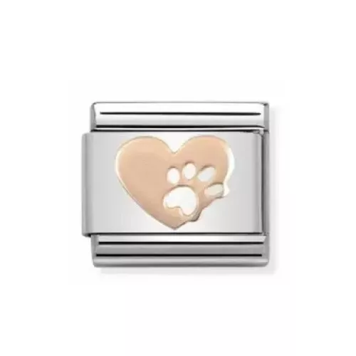 Suloinen Nomination Classic pala ruusukullanvärisellä sydämellä, jossa on tassun jälki.