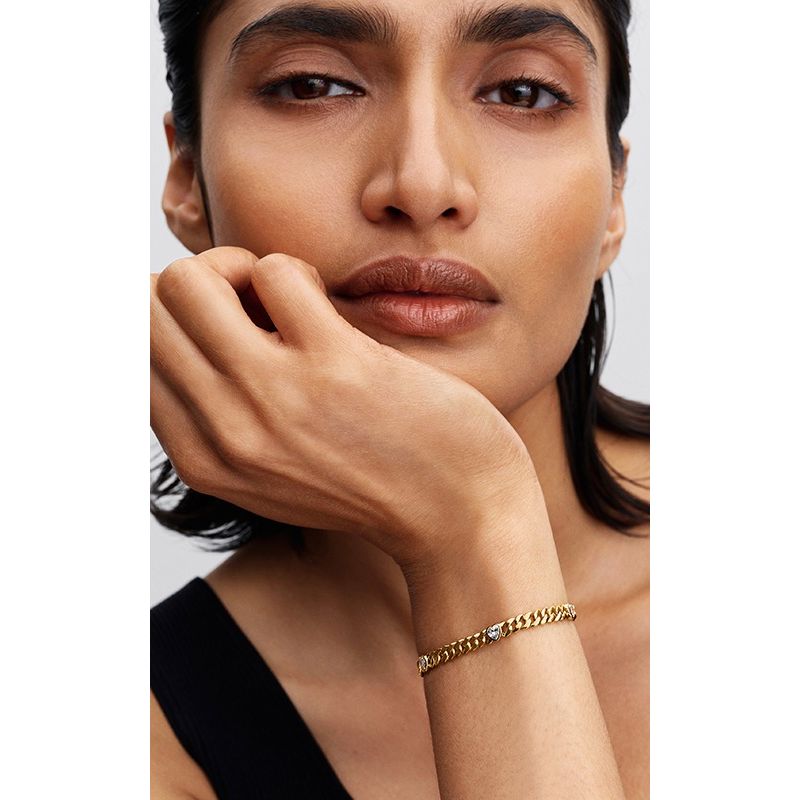 Pandora Heart Cuban Chain -rannekoru on rohkea ja tyylikäs katseenvangitsija, jossa yhdistyvät moderni muotoilu ja romanttinen yksityiskohta. Rannekoru on valmistettu laadukkaasta metalliseoksesta ja pinnoitettu 14 karaatin kullalla. Sen massiivinen kuubalainen ketju saa pehmeää vastapainoa sydämenmuotoisesta lukkoyksityiskohdasta, joka symboloi rakkautta ja voimaa. Saatavilla pituuksissa 16, 18 ja 20 cm. Täydellinen koru yksinään tai yhdistettynä muihin Pandora-koruihin.