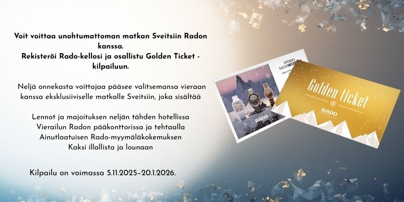 Valtuutettuna Rado-jälleenmyyjänä tarjoamme turvallisen ostoprosessin, asiantuntevan palvelun ja virallisen valmistajan takuun – kaiken, mitä tarvitset hankkiaksesi laadukkaan ja elegantin Rado-kellon.