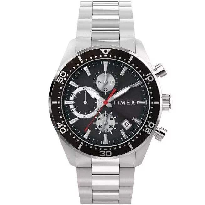 Timex Ridgefield Chronograph TW2Y56900 on sporttinen ja ajattoman tyylikäs rannekello, jossa yhdistyvät käytännöllinen kronografitoiminto ja selkeä muotoilu. Musta kellotaulu antaa kellolle voimakkaan ja klassisen ilmeen, joka sopii helposti erilaisiin tyyleihin.