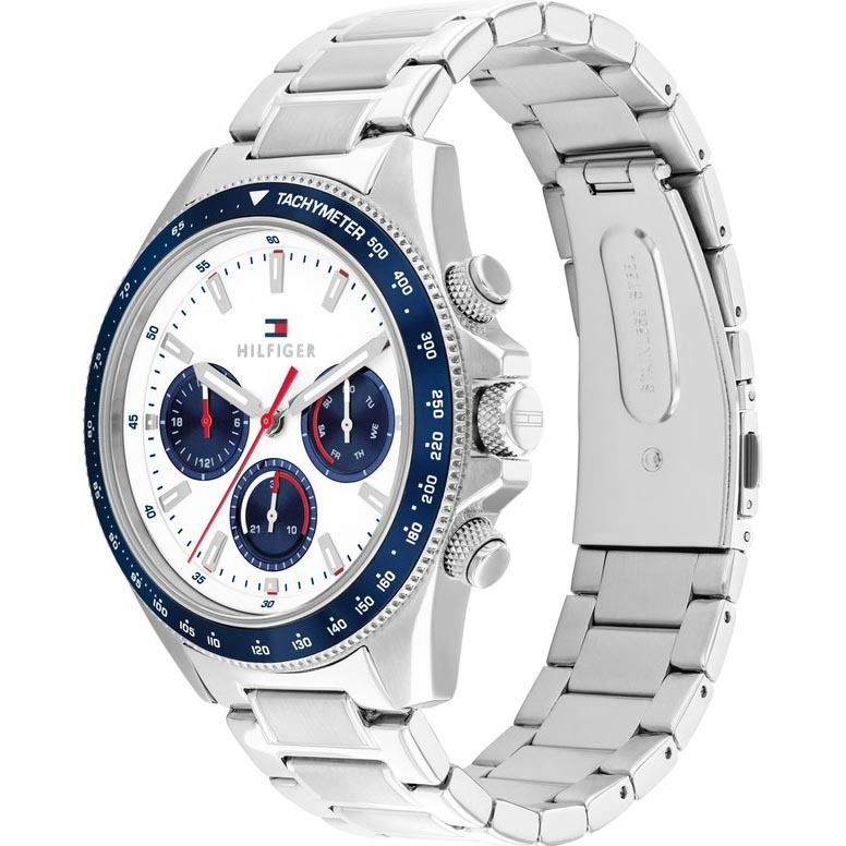 Kellon valkoinen kellotaulu tuo kokonaisuuteen raikkautta ja selkeyttä, tehden ajan lukemisesta helppoa. Huoliteltu design ja tunnistettava Tommy Hilfiger -tyyli tekevät kellosta näyttävän mutta hillityn asusteen.