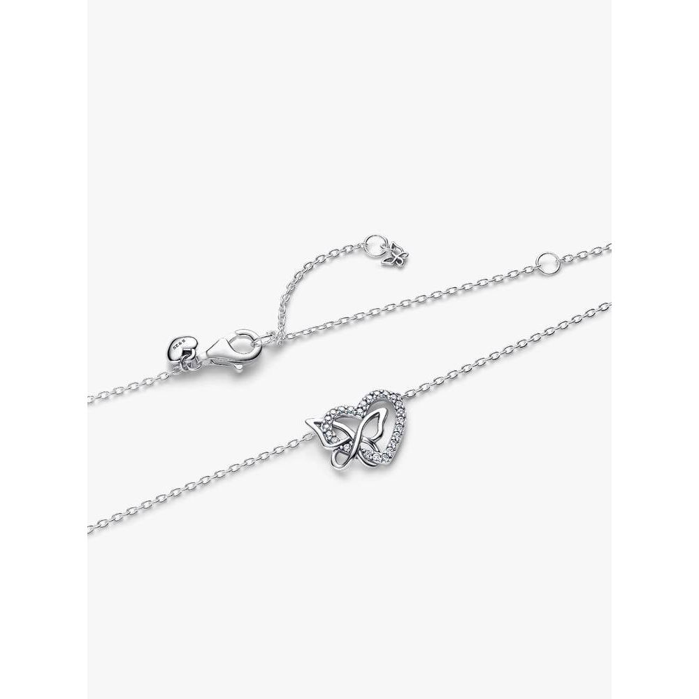 Pandora Entwined Heart & Butterfly halsband 394477C01-45 är ett elegant och symboliskt smycke som förenar kärlek och naturens skönhet. Det öppna hänget visar ett hjärta sammanflätat med en fjäril och symboliserar kärlekens och livets förändring.