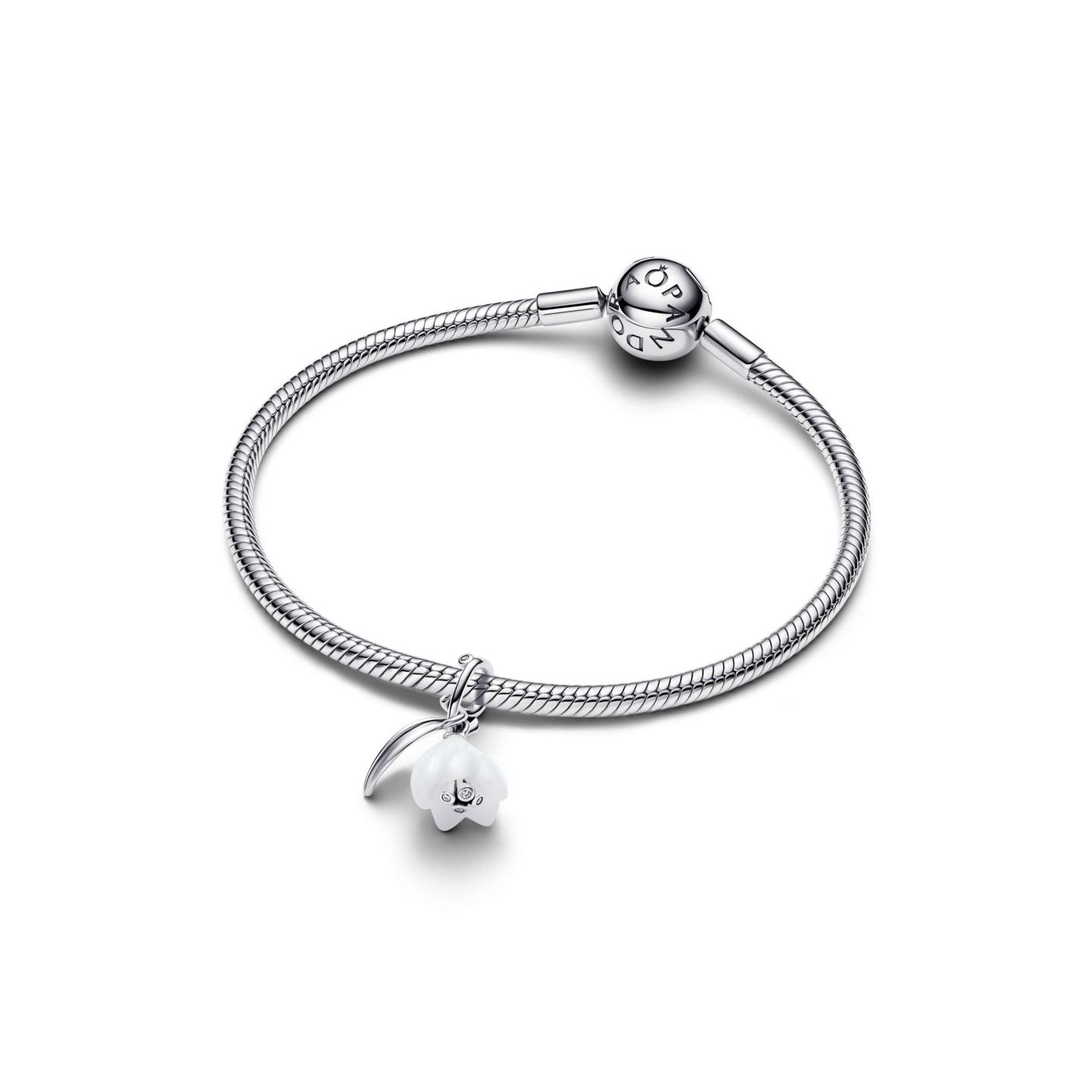 Pandora Snowdrop Flower Dangle är en vacker och symbolisk berlock inspirerad av vårens första blomma. Hänget i sterlingsilver pryds av en vit muranoglasblomma och glittrande klara kubiska zirkonior. Ett smycke som symboliserar hopp, förnyelse och naturens stilla skönhet.