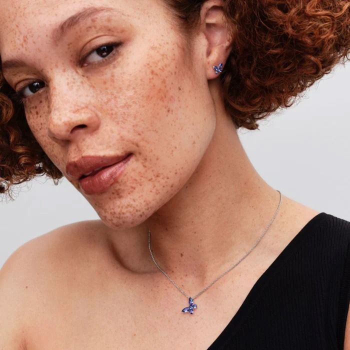 Pandora Timeless Butterfly-smyckessetet förtrollar med sin mjuka och tidlösa design. Setet innehåller ett halsband och matchande örhängen med ett vackert blått fjärilsmotiv. Fjärilen symboliserar förändring, hopp och nya början, vilket gör setet till en betydelsefull gåva eller ett personligt smycke för vardagen.
